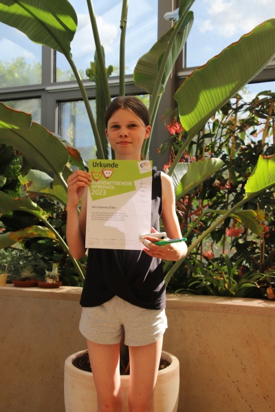 Zum siebten Mal fand der Jugendwettbewerb Informatik statt und Julia Ehlers war zum zweiten Mal dabei. Sie hat in der ersten Runde einen ersten Preis und in der zweiten Runde einen zweiten Preis erreicht. Eine Steigerung auf 38 von 48 Punkten, genial! Herzlichen Glückwunsch!