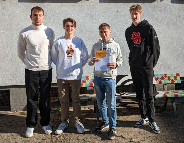 An dem Bundeswettbewerb Informatik haben insgesamt nur 1637 Schülerinnen und Schüler teilgenommen. Nicolas Beyer, Paul Gänßmantel, Jasper Schaich und Tilman Weber aus dem Informatik Grundkurs 13 nahmen zum ersten Mal teil und haben in der erste Runde 11 Punkte erreicht! Herzlichen Glückwunsch!