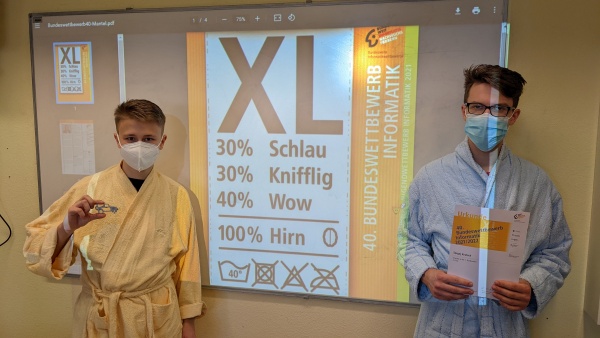 An dem 40. Bundeswettbewerb Informatik haben nur 1615 Schülerinnen und Schüler teilgenommen. Sergej Krutsch und Richard Wacker aus dem Informatik Grundkurs 13 nahmen zum dritten Mal teil und haben die erste Runde mit einem 3. Platz abgeschlossen! Herzlichen Glückwunsch! Als Preis gab es ein Multitool.